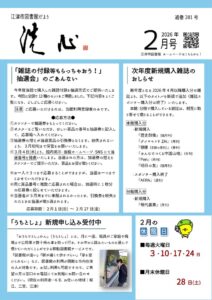 江津市図書館だより「洗心」2025年11月号 2025 11/01 洗心 2025年11月1日 2025年11月号の洗心をお届けします。(画像をクリックするとPDFファイルが開きます) 2025年11月号表紙 2025年11月号裏表紙 2025年11月号中面 2025年11月号中面 洗心 江津市図書館の記事をシェアする URLをコピーしました! 江津市図書館だより「洗心」2025年10月号 江津市図書館だより「洗心」2025年12月号 その他の記事 江津市図書館だより「洗心」2026年2月号 江津市図書館だより「洗心」2026年1月号 江津市図書館だより「洗心」2025年12月号 江津市図書館だより「洗心」2025年10月号 江津市図書館だより「洗心」2025年9月号 江津市図書館だより「洗心」2025年8月号 江津市図書館だより「洗心」2025年7月号 江津市図書館だより「洗心」2025年6月号
